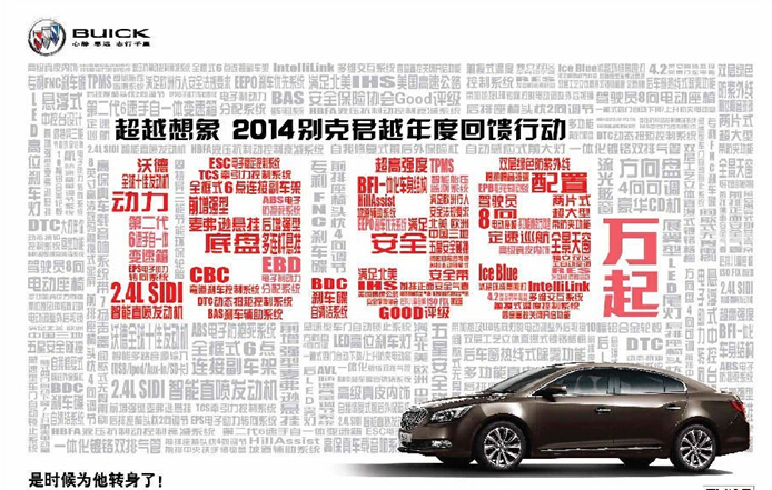 在车市“金九银十”到来前夕,上海通用汽车别克品牌今天联手全国600多家经销商推出“超越想象”2014别克君越年度回馈行动。其中最引人注目的是指导价23.59万的君越2.4L SIDI领先舒适型,在回馈活动中消费者可以19.99万元的价格轻松
